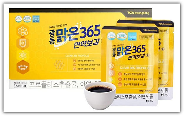 어느 건강기능식품이든지 기능성 성분이 들어가야 식약처로부터 건강기능식품으로 인정을 받을 수 있는데요. 광동 맑은 365 면역보감의 기능성 성분은 바로 '프로폴리스'라는 것이었어요.